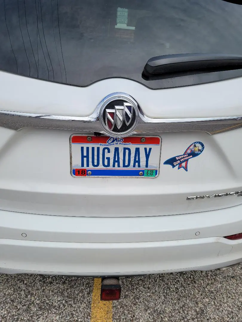“HUGADAY.” Those were the letters of a license plate on the back of a white Buick in the parking lot.